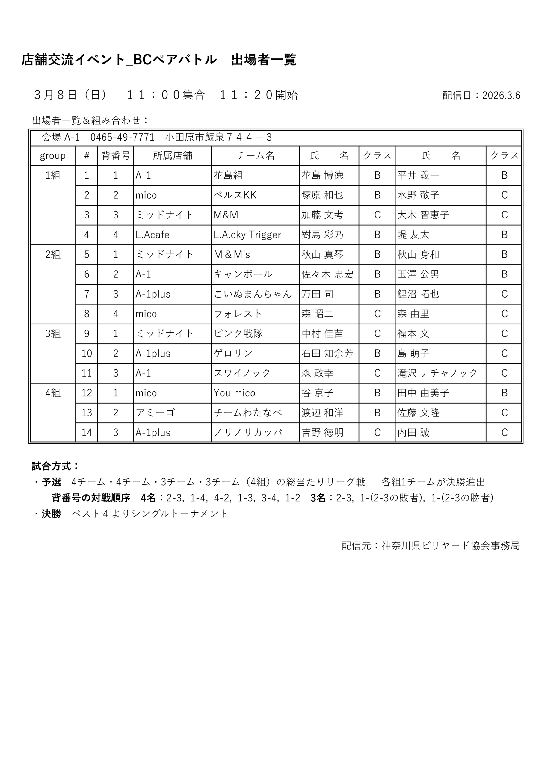 <組み合わせ>店舗交流イベント「BCペアバトル」
