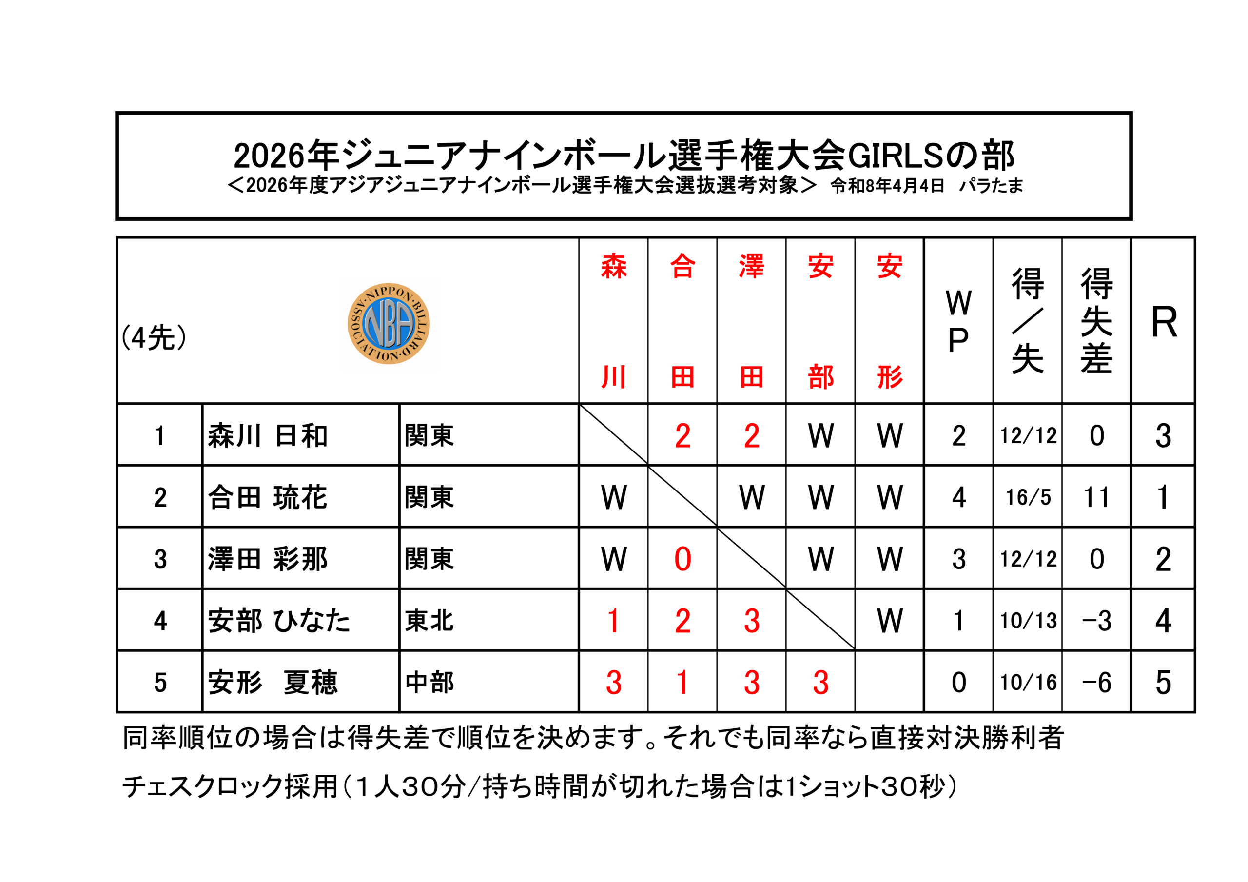 【試合結果】第26回 全日本ジュニアナインボール選手権大会 女子派遣予備選考会「ガールズの部」