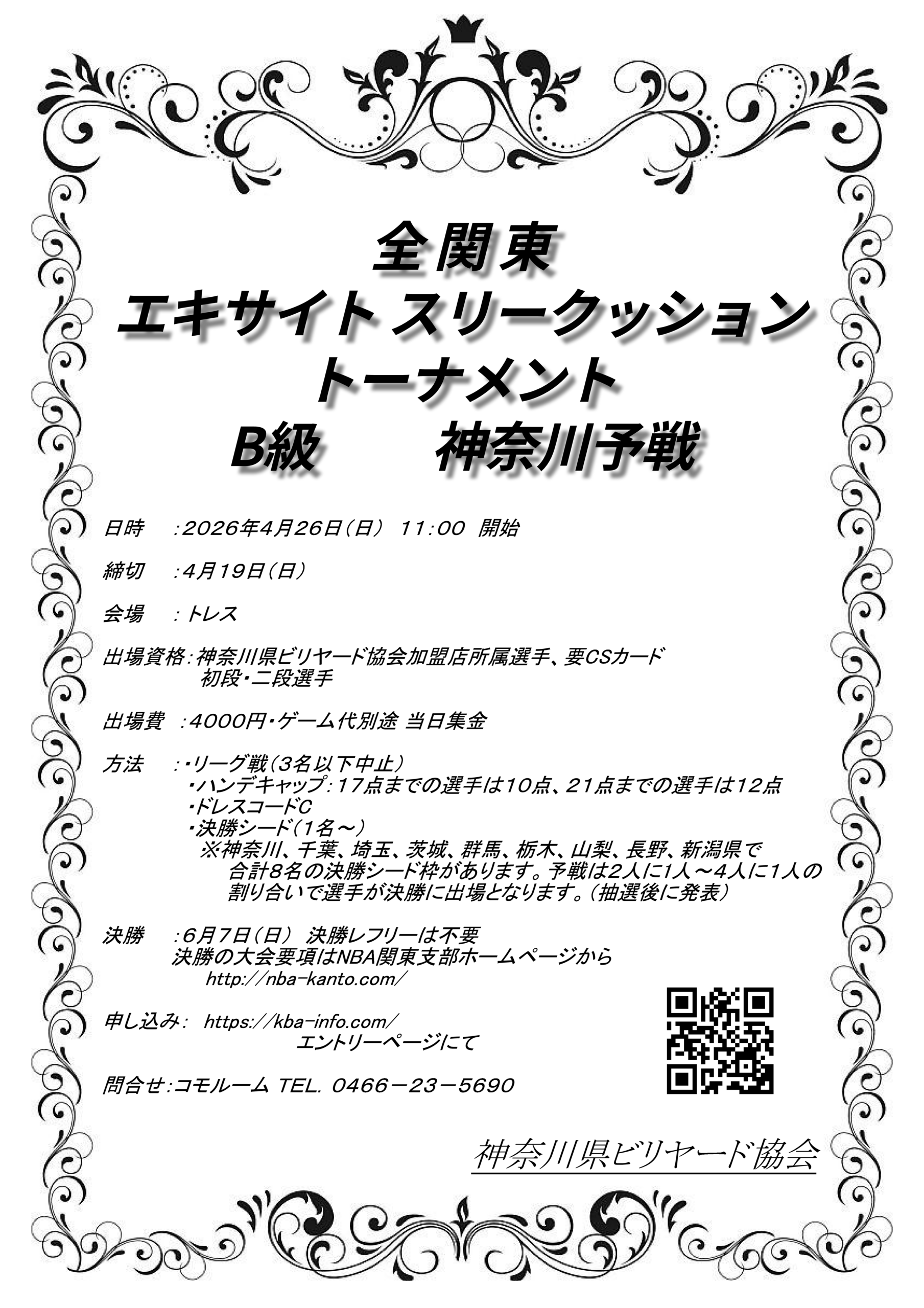 <大会要項>春季 全関東エキサイト3CトーナメントB級 神奈川予選